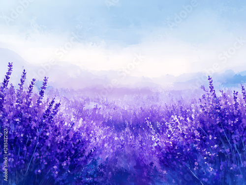 © pim, Naklejka premium Lavender field under a serene blue sky.