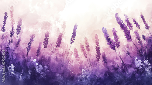 Naklejka premium Lavender fields blooming nature landscape floral artwork calm environment...