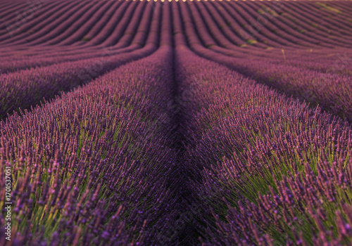 © fotosenukas, Naklejka premium Lavender fields in bloom during sunset create a vibrant landscape in perfect symmetry Generative AI
