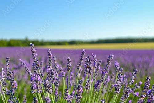 Naklejka premium Lavender Fields in Full Bloom Under Clear Skies