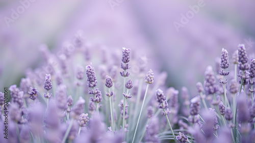 Naklejka premium Lavender Fields Pastel Delicate purples and greens blended into a pastel...