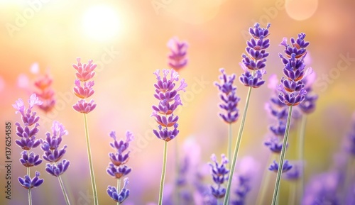 Fototapeta premium Lavender Flower Field Blooming at Sunset in Provence France Nature