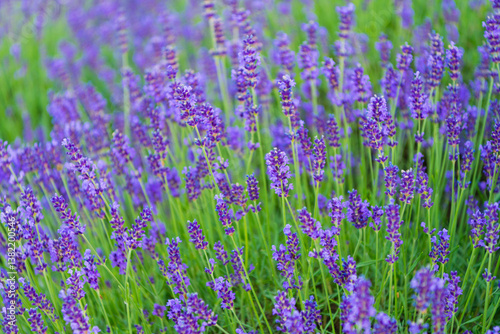 Naklejka premium Lavender flower in summer. France Provence field. Purple lavender bloom....