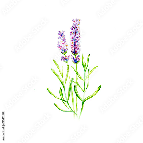 © NATALIIA TOSUN, Naklejka premium Lavender Flower Watercolor Drawing Illustration
