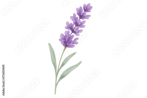 © Krtola , Naklejka premium Lavender flower watercolor illustration with purple blooms and green leaves, ideal for art and botanical designs