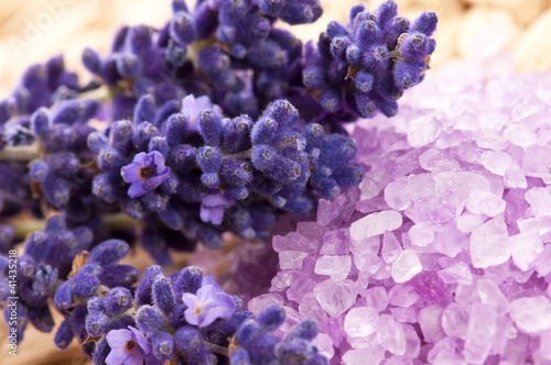 Obraz premium Lavender flowers and the bath salt - beauty treatment