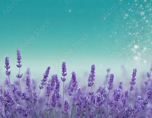 © Nikolay, Naklejka premium Lavender flowers basking under soft light, creating a serene and calming atmosphere.