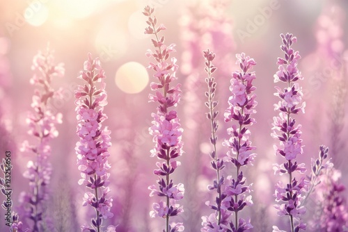 Fototapeta premium Lavender flowers bloom in soft sunlight, creating a serene atmosphere in a...