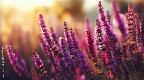 Fototapeta premium Lavender flowers blooming in a soft sunset glow
