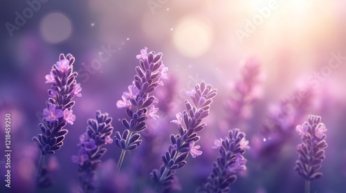 Naklejka premium Lavender flowers blooming in soft sunlight