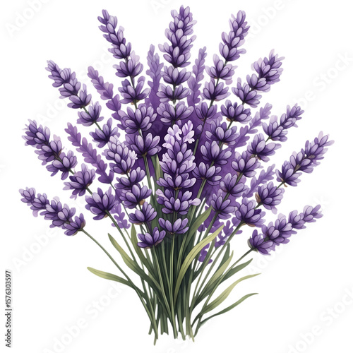 © hsn, Fototapeta premium Lavender flowers bouquet purple floral plant illustration on transparent background