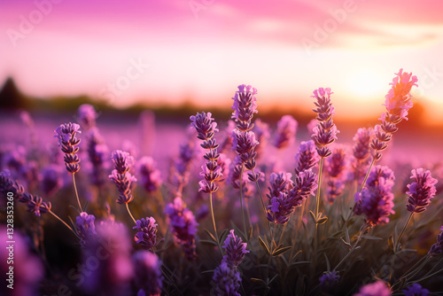 © Pakhnyushchyy, Naklejka premium lavender flowers. close up shot of lavender flowers. Blooming lavender in a field