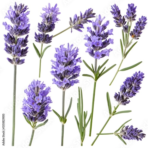 © ลลิดา ไชยศรีษะ, Fototapeta premium Lavender Flowers Collection, Isolated on White