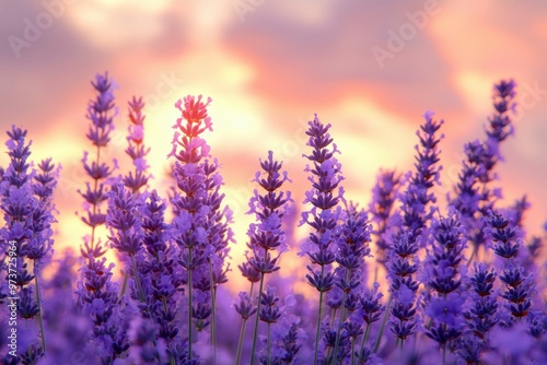 © Outkast, Fototapeta premium Lavender Flowers in a Field at Sunset