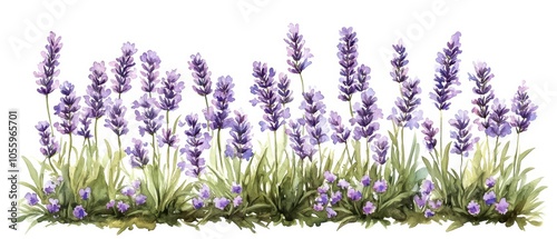© Inlovehem, Naklejka premium Lavender flowers in bloom, white isolated background.