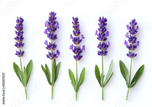 Obraz premium Lavender Flowers in Different Stages of Bloom on White Background