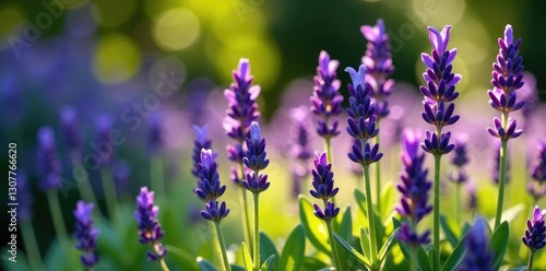 © Phetthanousack, Fototapeta premium Lavender flowers in sunlight with dark shadows, shadows, garden