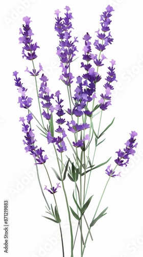 © iVGraphic, Obraz premium Lavender flowers on white background, botanical illustration. Aromatherapy and relaxation concept