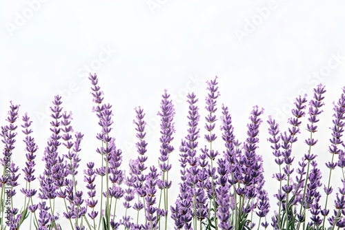 Naklejka premium Lavender Flowers Row White Background Peaceful Image