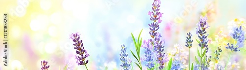 © nuanjan, Naklejka premium Lavender flowers wallpapers tranquil purple blossoms in full bloom nature background for relaxation and calm
