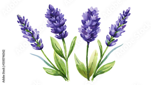 © TingYi, Naklejka premium Lavender Flowers Watercolor Illustration on White or Transparent Background. Perfect for: Mother’s Day, Wellness Retreats, Summer Festivals