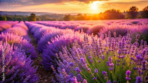 © Kaveepat, Naklejka premium Lavender Garden Rule of Thirds AI Photo