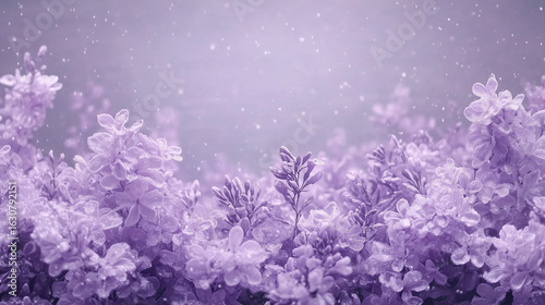 © Olga, Obraz premium Lavender lilac blossoms with falling snowflakes in dreamy winter scene
