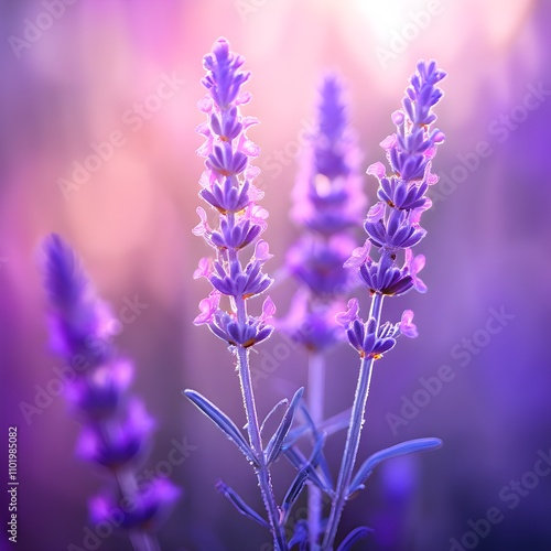 © Parichart, Naklejka premium Lavender Sprig in Soft Pink and Purple Glow