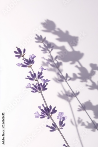 © BerkahStock, Obraz premium Lavender sprig with shadow on white background.