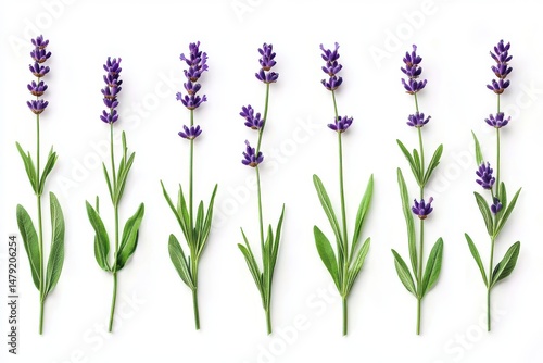 © Sejjil, Naklejka premium Lavender sprigs isolated on white background for aromatherapy, decoration, and botanical illustration.