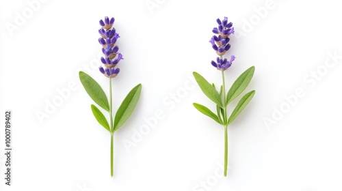 © studio clever, Fototapeta premium Lavender sprigs with leaves on white background Generative AI