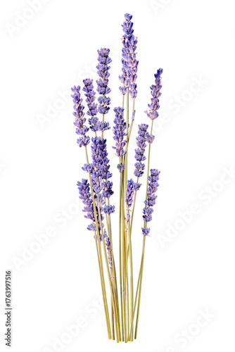 © Rawpixel.com, Naklejka premium Lavender stems with purple flowers, tall and elegant. Lavender blooms, vibrant purple. Lavender, a symbol of calm and beauty, in full bloom. Floral element isolated on white background.
