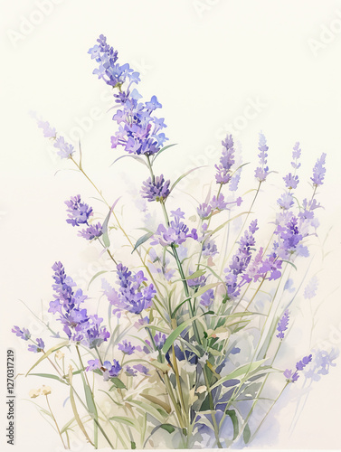 © Anciens, Fototapeta premium Lavender watercolor hand-painted decorative elements