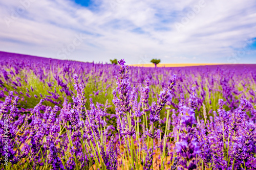 © Patrik Vališ, Naklejka premium Lavender with landscape in the background.