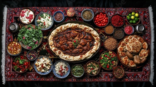 Fototapeta premium Lavish Middle Eastern Feast on Ornate Rug