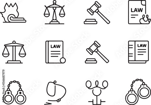 © tshirtshops, Fototapeta premium Law and Order Thin Line Symbol Pack