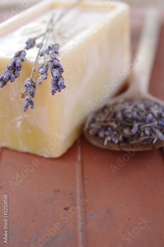Fototapeta premium Lawenda i lawendowe mydło