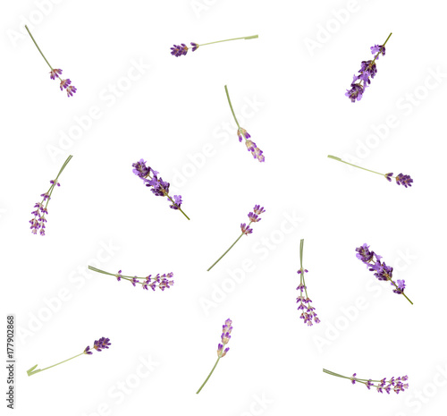 Obraz premium Lawenda kwiaty odizolowywający na białym tle, odgórny widok. Modny wzór...