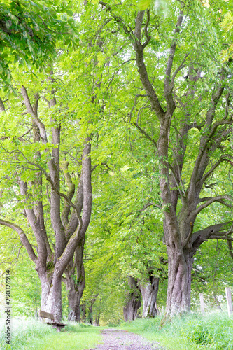 © zauberblicke, Obraz premium Ławka w letniej alei kasztanowej
