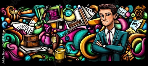 © BerkahStock, Obraz premium Lawyer with legal items doodle art.