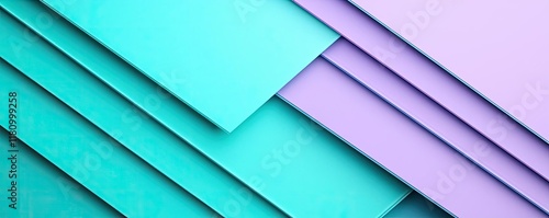 © Thamonchanok, Obraz premium Layer abstract background idea. Vibrant layered geometric shapes in teal and lavender create a modern abstract background.