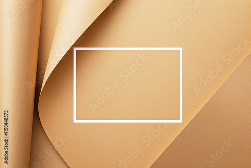 © PlanetOfVectors, Obraz premium Layered beige paper background with a white rectangular frame. Minimalist design concept, suitable for mockups, branding, or presentation purposes. Ai generative