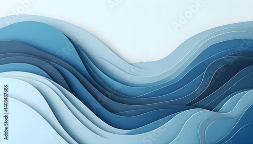 Obraz premium Layered blue paper-cut waves form a modern minimalist abstract background...