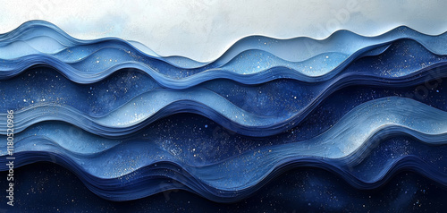 © Ascents, Obraz premium Layered Blue Waves Abstract Art Design