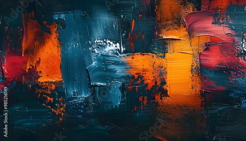 © Faustudio, Obraz premium Layered brushstrokes, rich colors, artistic depth.