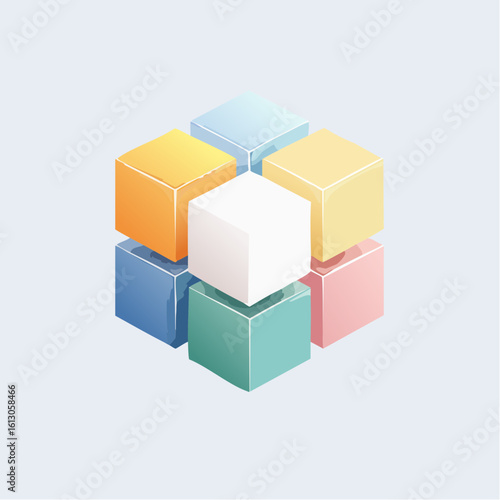 Obraz premium layered cubes and shadows, deep perspective, soft glow