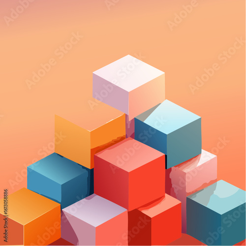 Obraz premium layered cubes and shadows, deep perspective, soft glow