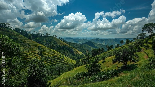 © Rizvan, Naklejka premium Layered farming plots on a mountainous slope