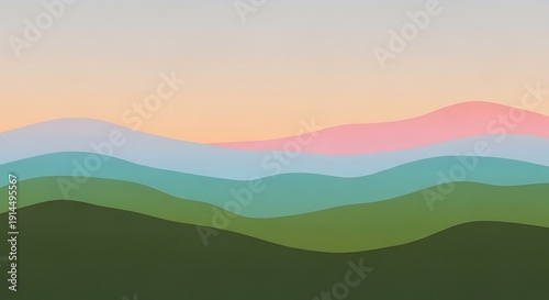 Obraz premium Layered horizon illustration with soft shades, pastel colored hillsides