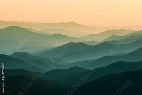 © Kastain, Fototapeta premium Layered Mountain Range During Golden Hour Showcasing Beautiful Fall Colors